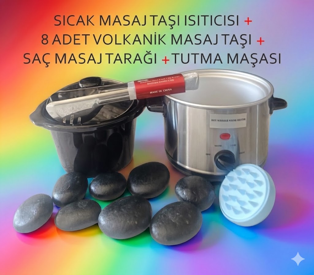 1201 MASAJ TAŞ ISITICISI (Little)+Masaj Taşı+Tutacak+Masaj Tarağı