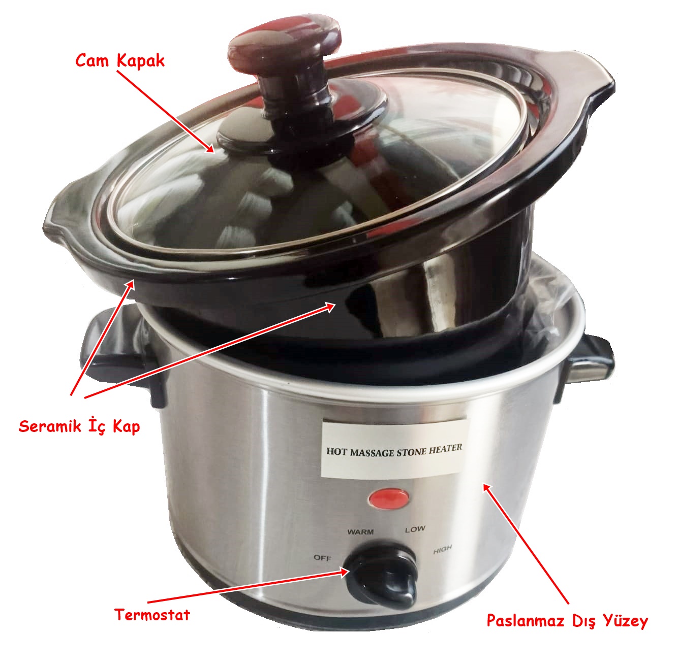 Sıcak Taş Isıtıcısı (Küçük Boy): Isı ayar düğmesi sayesinde taşları güvenli ve sabit bir sıcaklıkta tutar. Paslanmaz iç yüzeyi ile temizliği oldukça kolaydır.